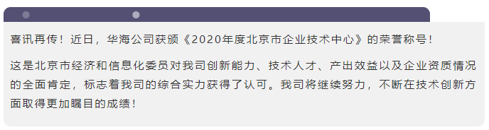 華海獲頒“2020年度北京市企業(yè)技術(shù)中心”榮譽(yù)稱號(hào)